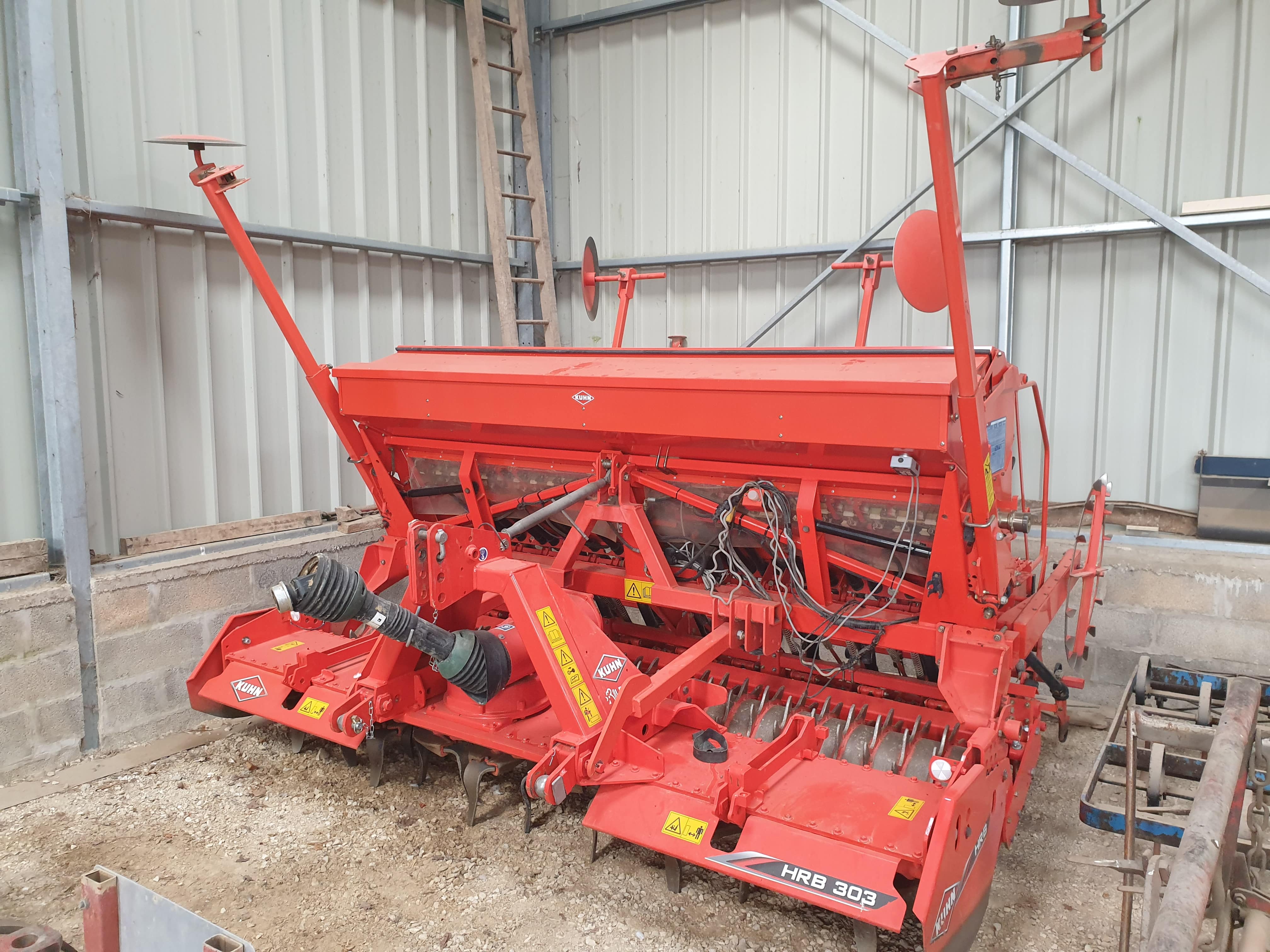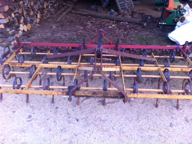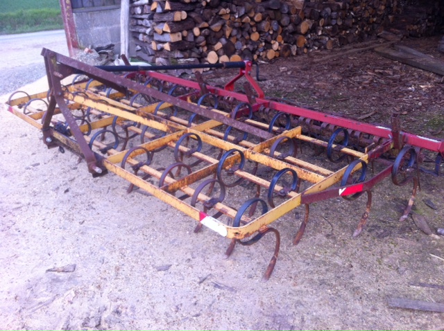 Vibro Kongskilde 3.50M, chassis fixe, 4 rangées de dents, herses de recouvrement et double rouleaux.